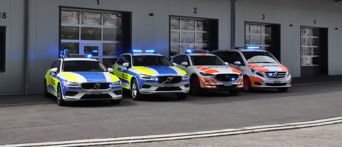 -Volvo V60 mit Lichtbalken Zirkon und dem BT-H 100 Bedienteil - Nachfahrkamera auf dem originalen Bildschirm